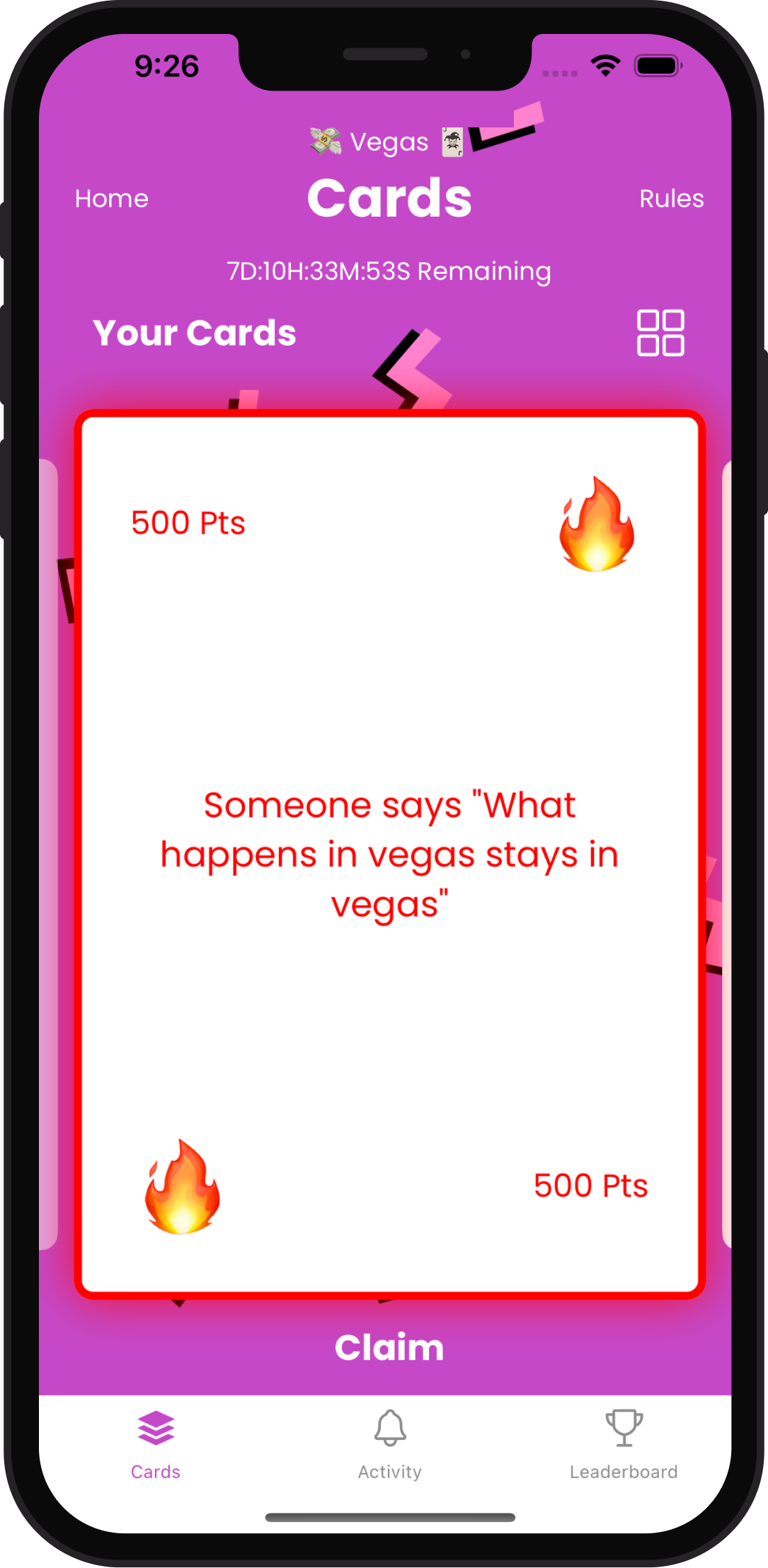 Claim cards as they happen and earn points!
