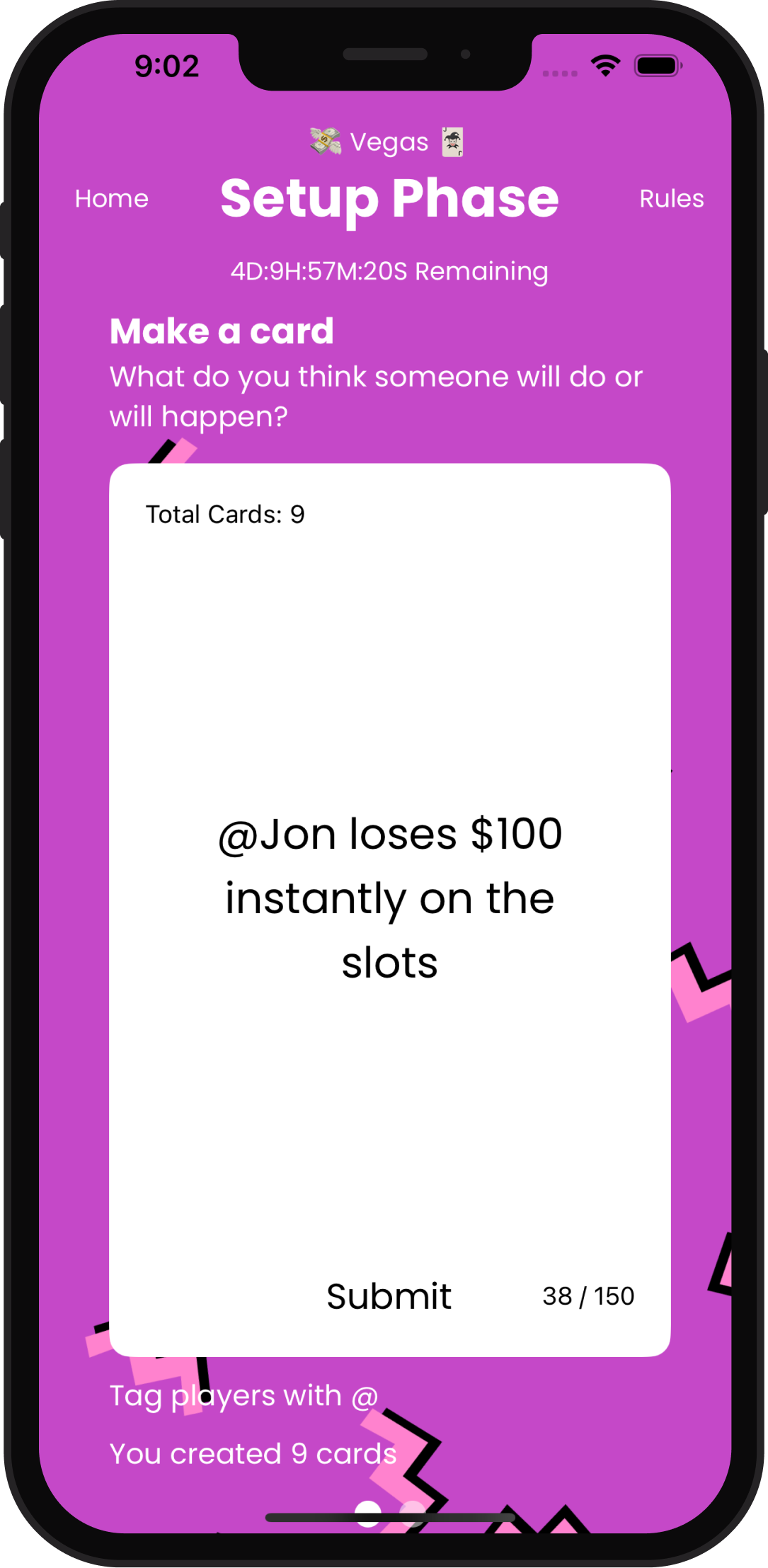 Predict what you think is gonna happen. Tag other players so that they can't see cards that are about them!